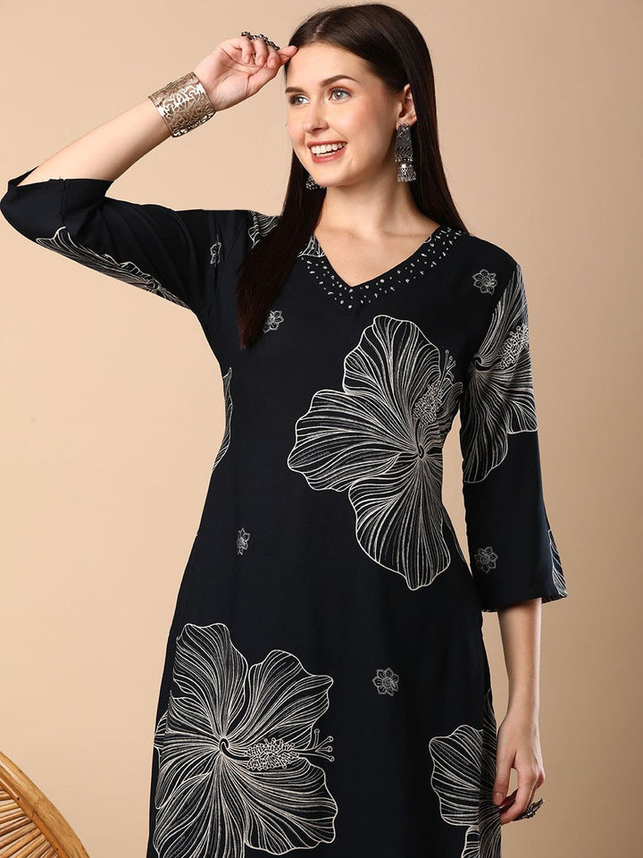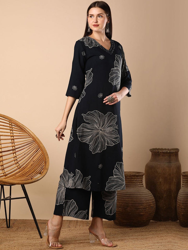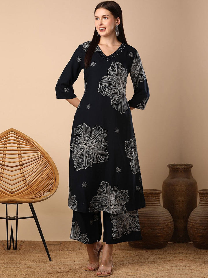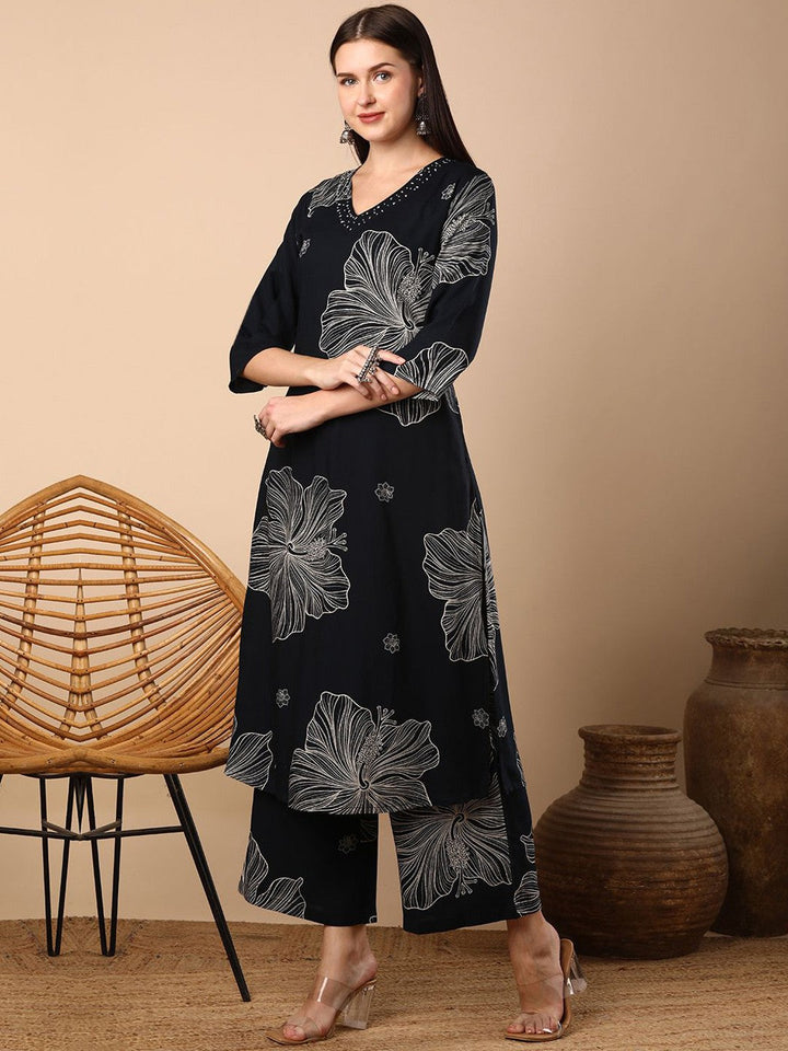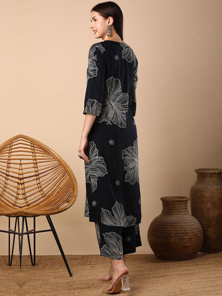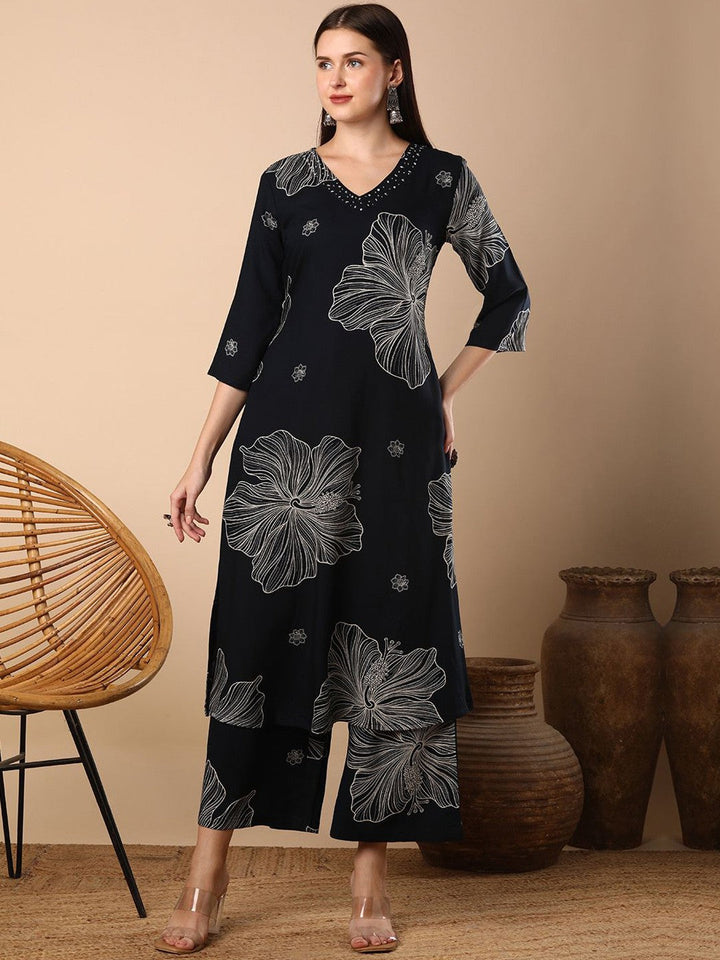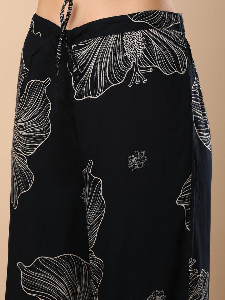 Abstract Floral Printed Straight-Fit Tunic & Palazzo Co-Ord Set
