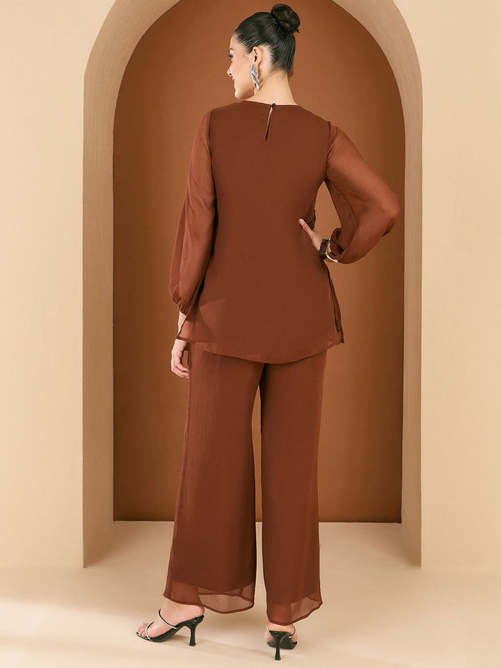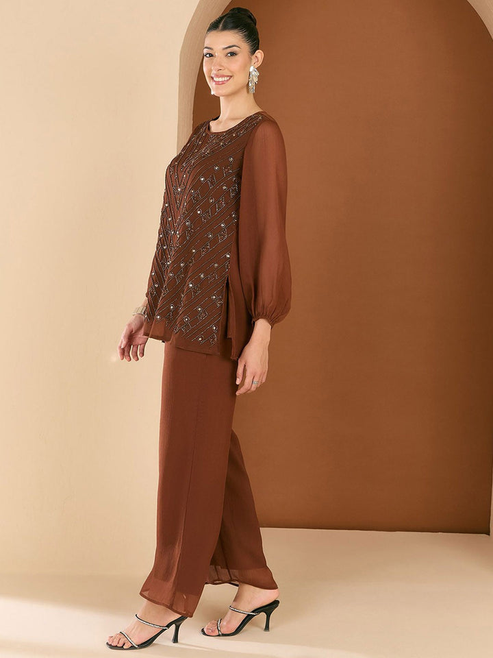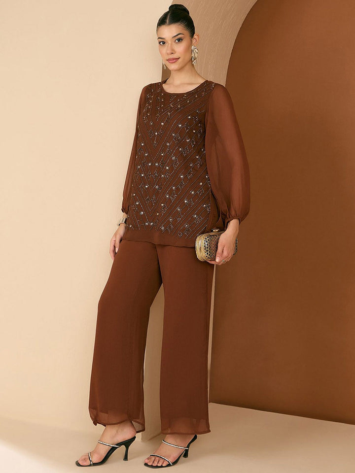 Embellished Round Neck Top & Trousers Co-Ords