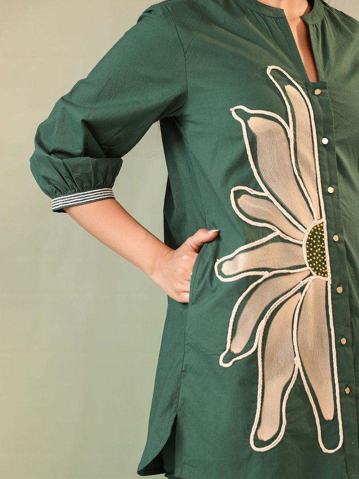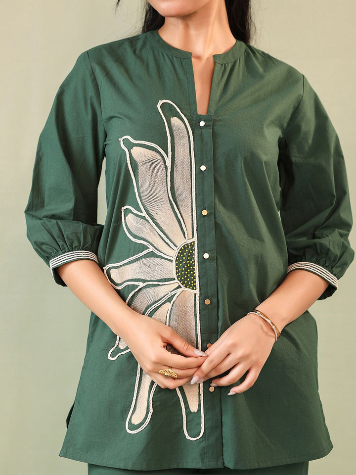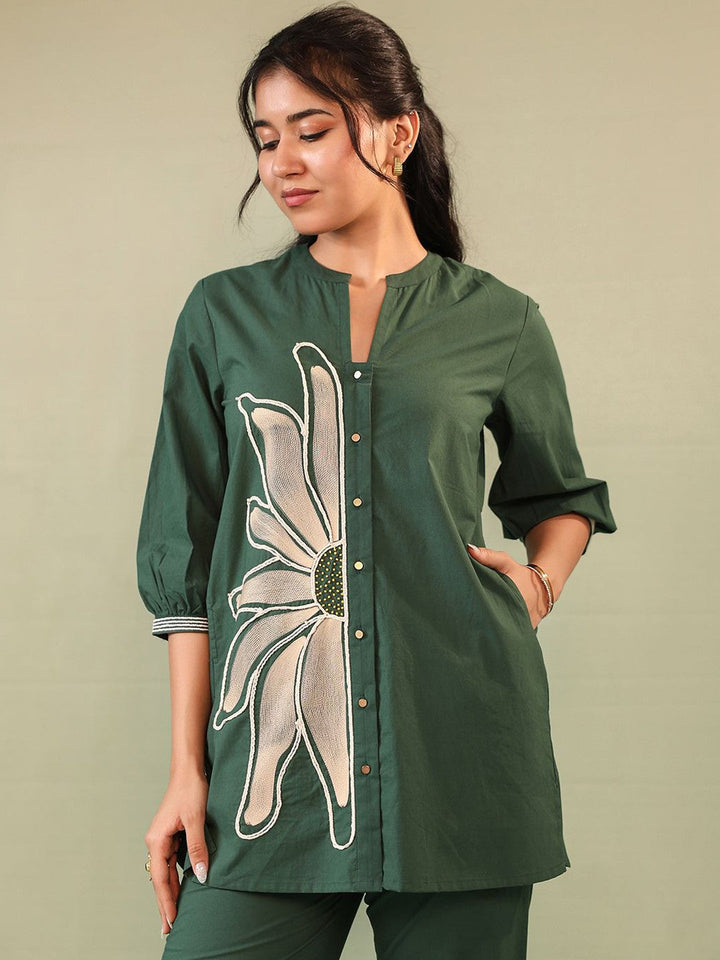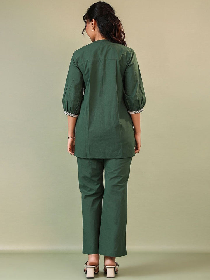 Embroidered Pure Cotton Mandarin Collar Neck Shirt & Trouser Co-Ords
