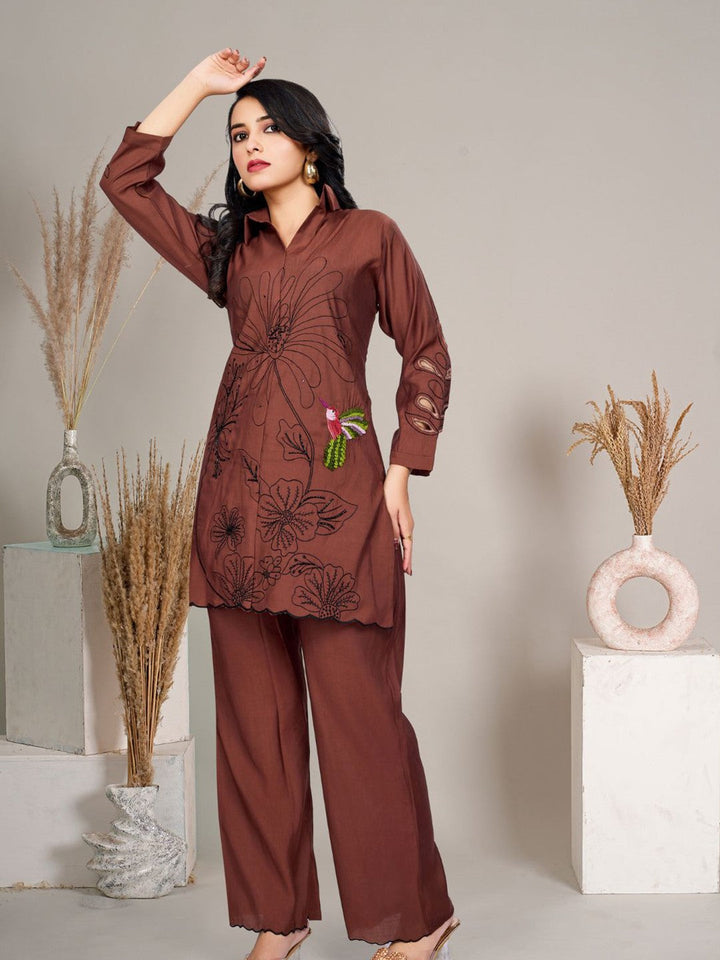 Embroidered Pure Cotton Tunic With Trousers Co-Ords