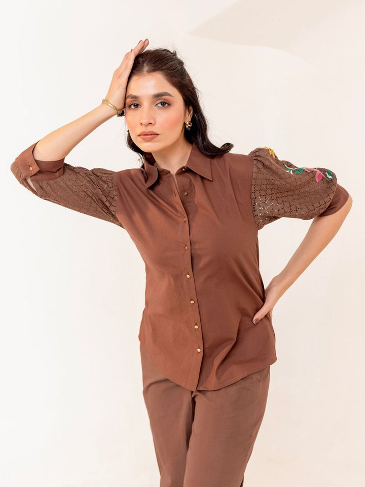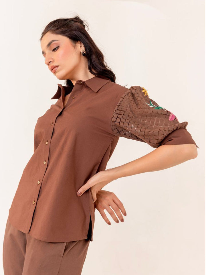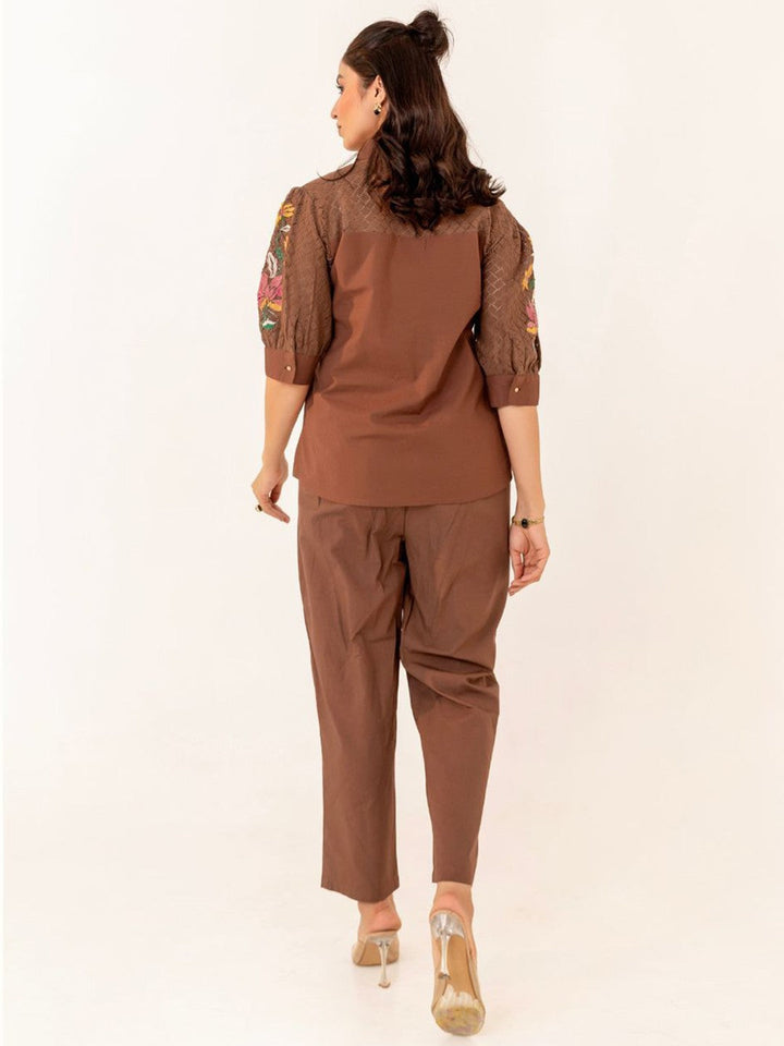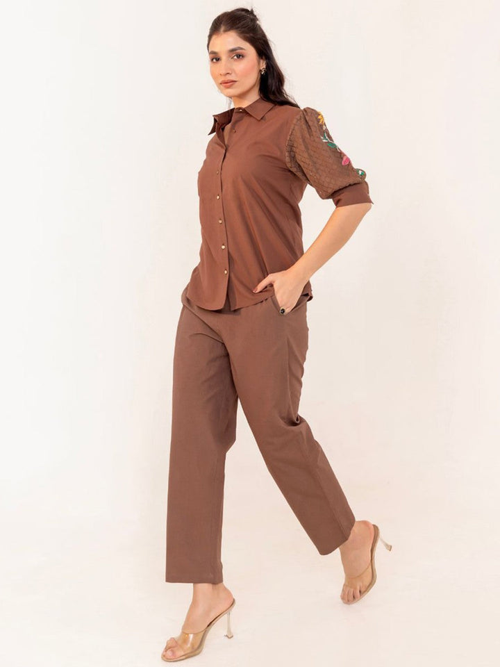 Embroidered Shirt Collar Pure Cotton Shirt With Trousers Co-Ords