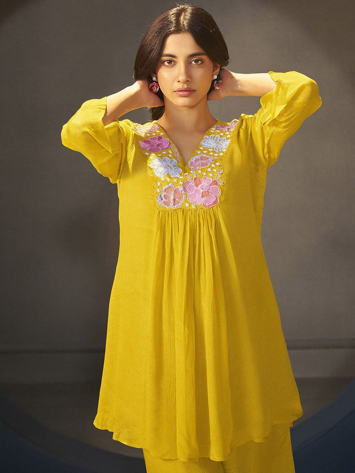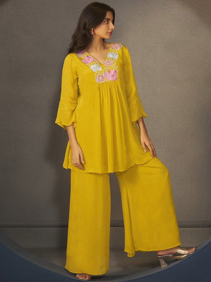 Embroidered V-Neck Top With Palazzo Co-Ords