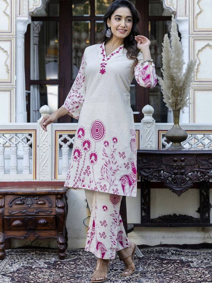 Floral Embroidered Pure Cotton Top & Trousers Co-Ords