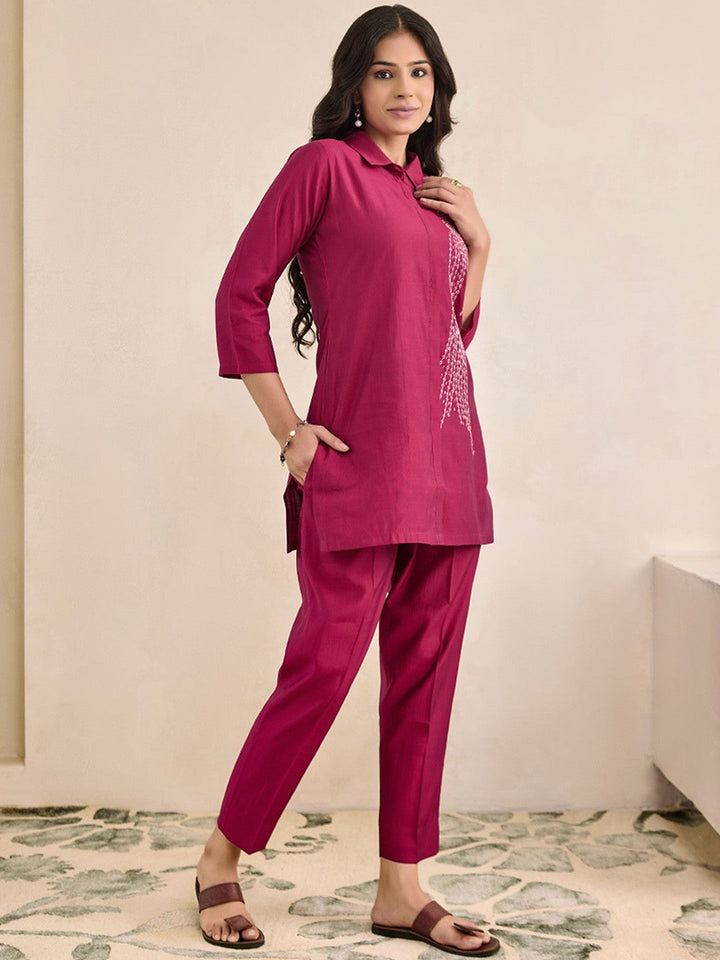 Moh Collection Plus Size Embroidered Shirt Collar Tunic With Trousers Co-Ords