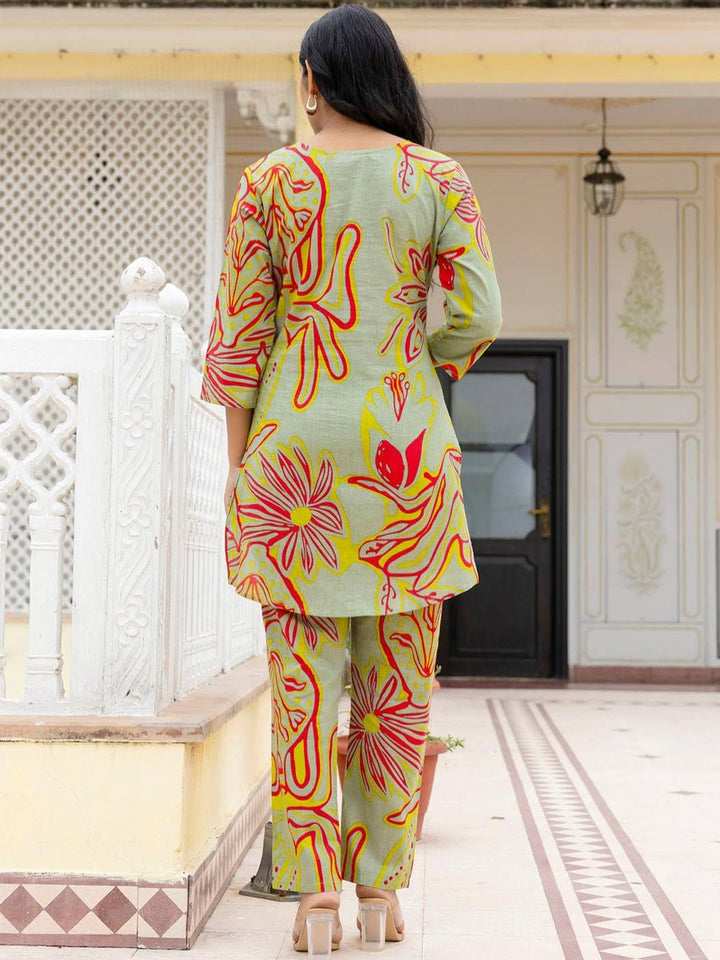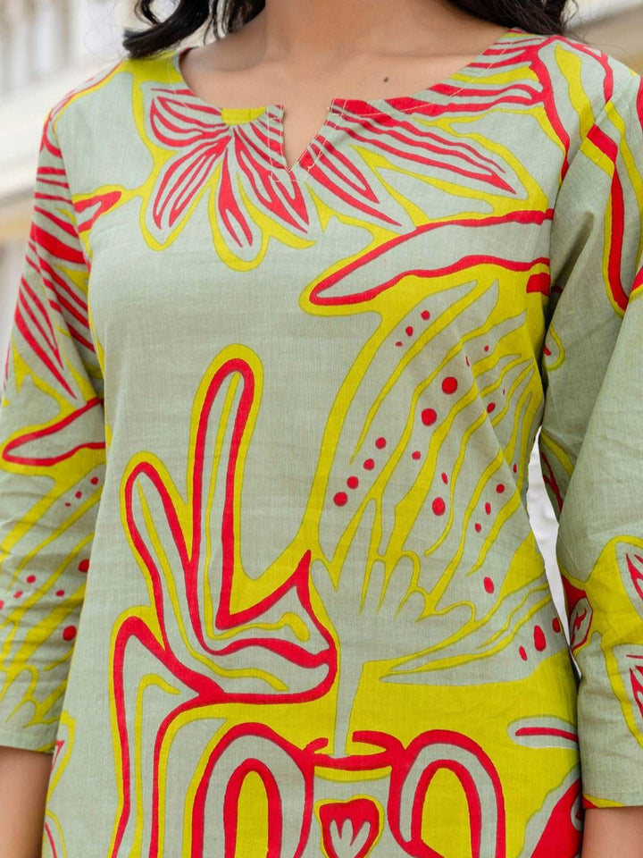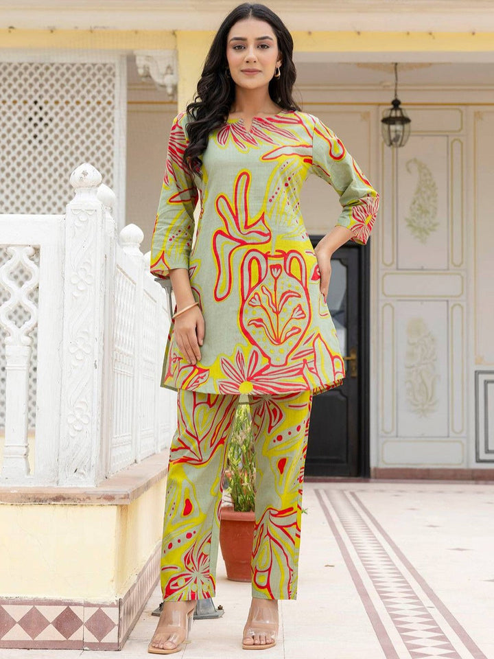 Printed Pure Cotton Tunic With Trousers Co-Ords