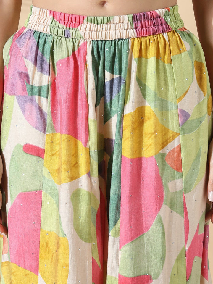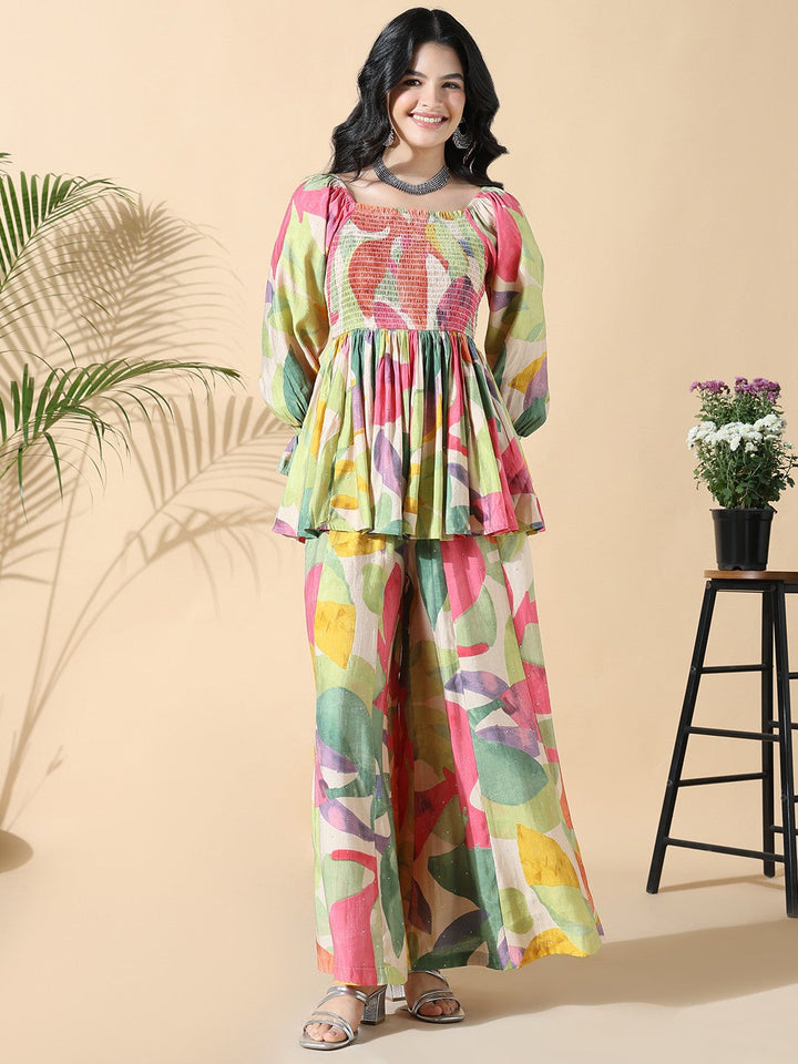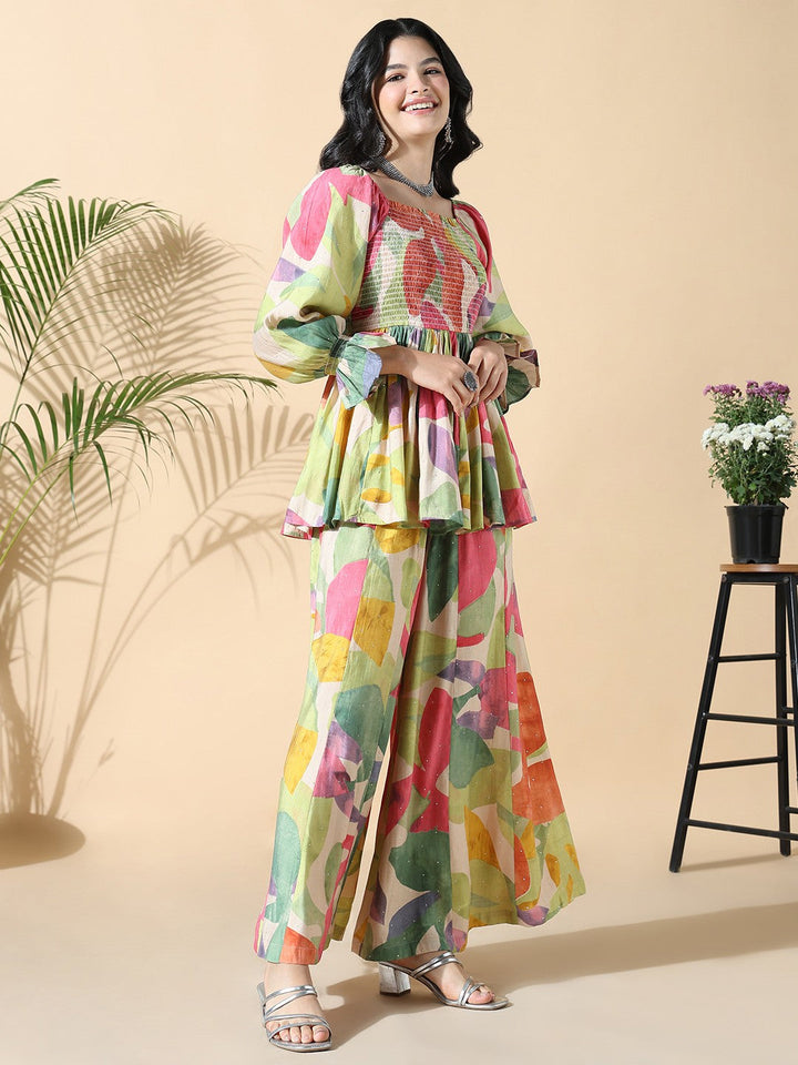 Printed Square Neck Peplum Tunic With Trousers