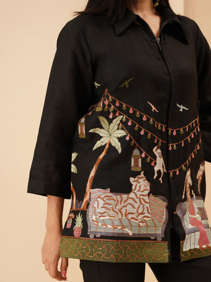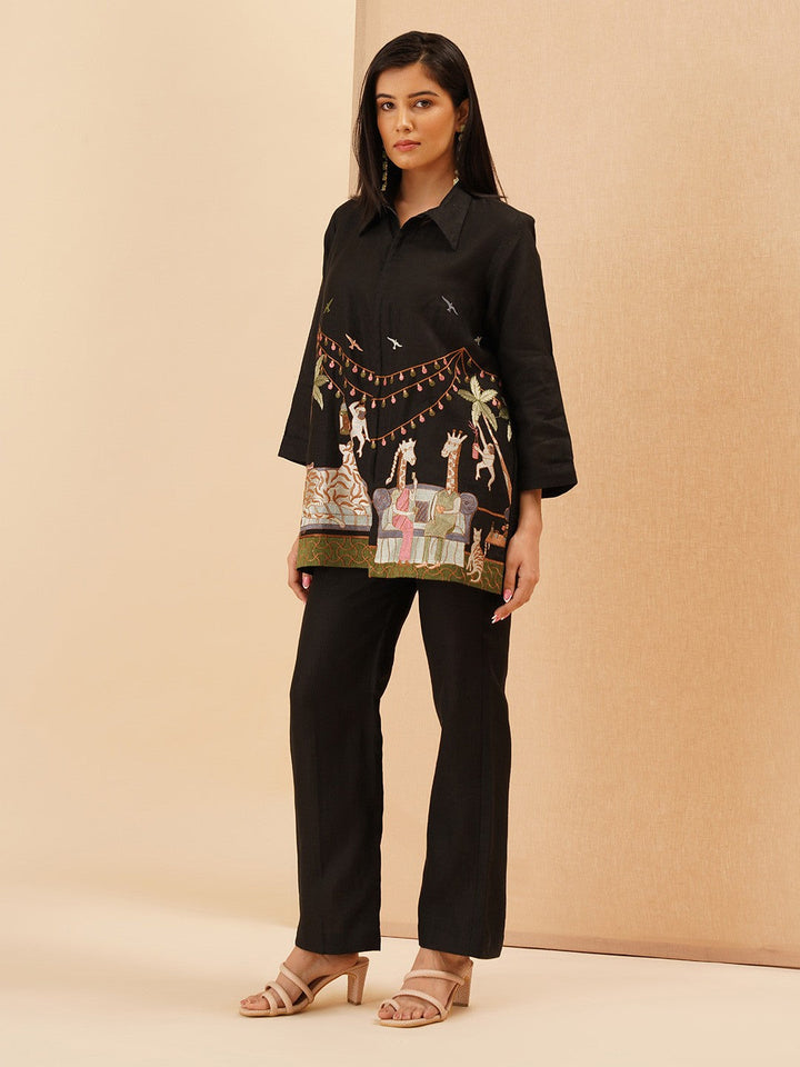 Ruhani Resham Embroidery Linen Shirt With Trousers